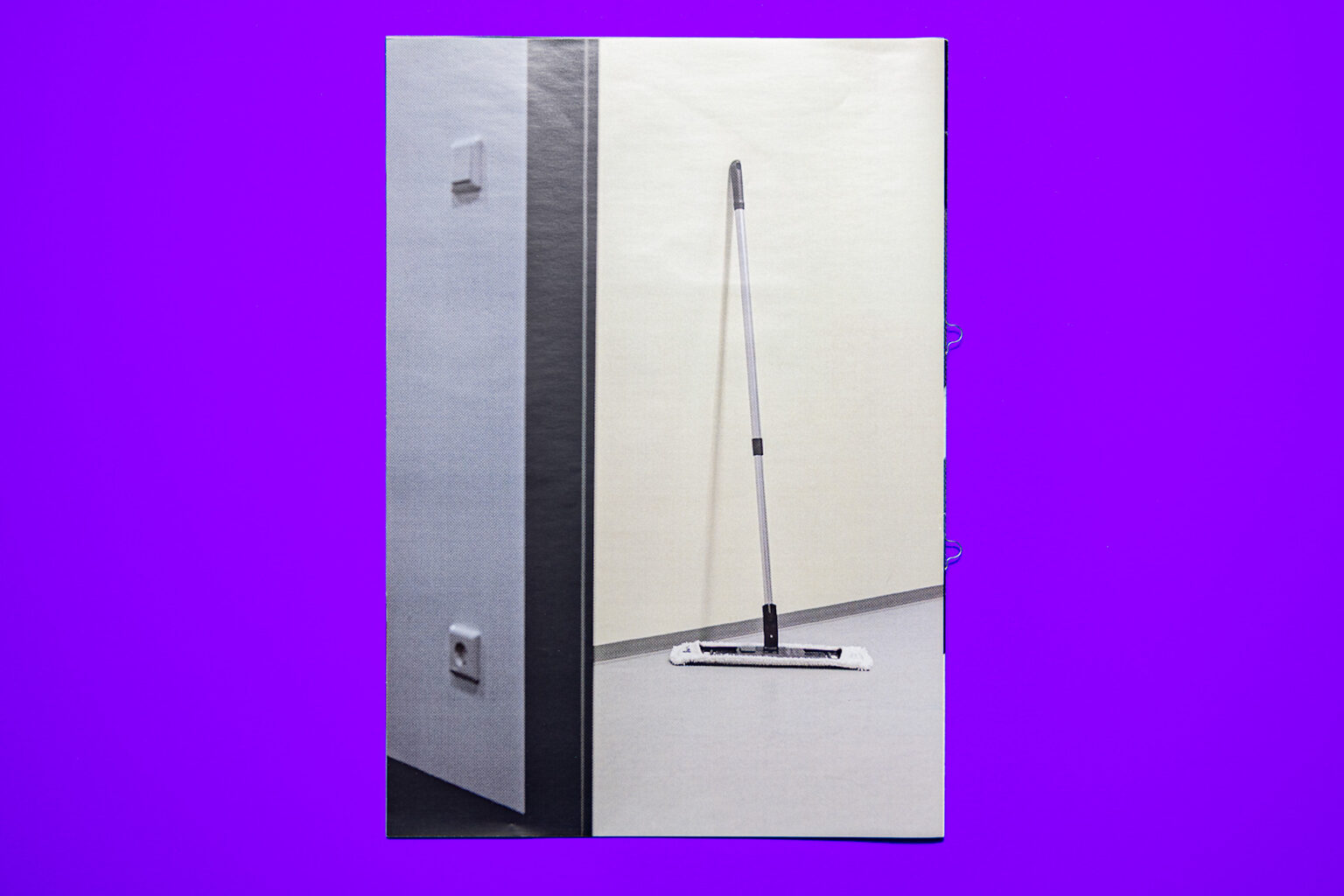 A company ethics guide from a major pharmaceutical company and a dead fly, as found in the room, are also displayed as part of the installation. The cardboard corners that protected the frames during transport now frame the dirt under the sink.