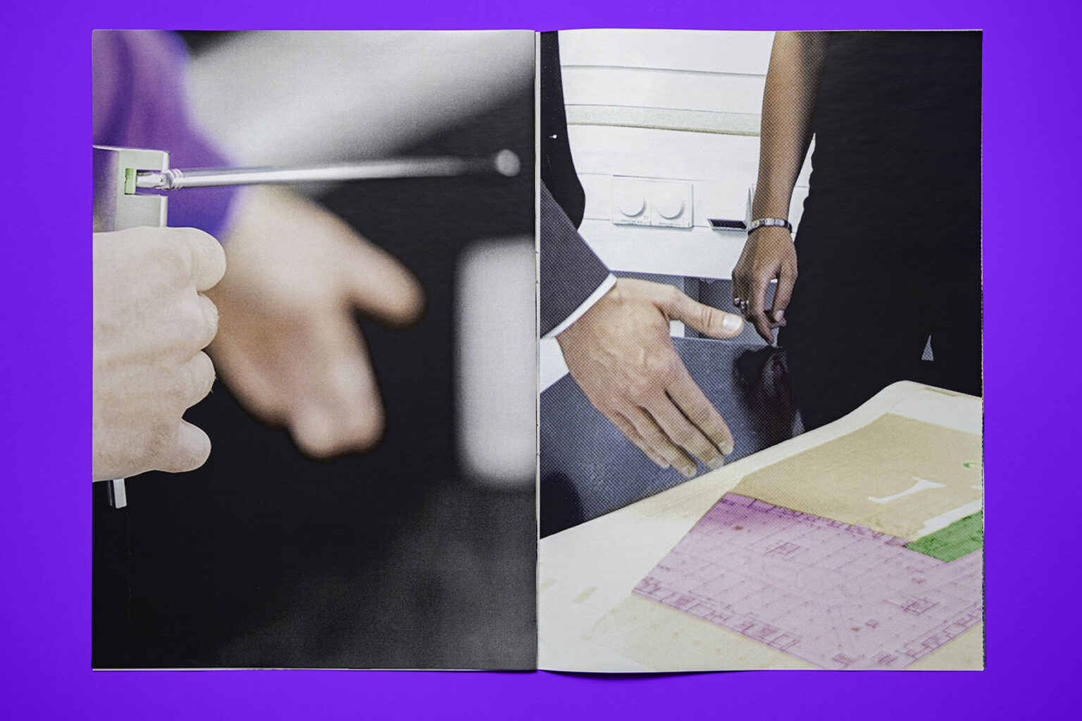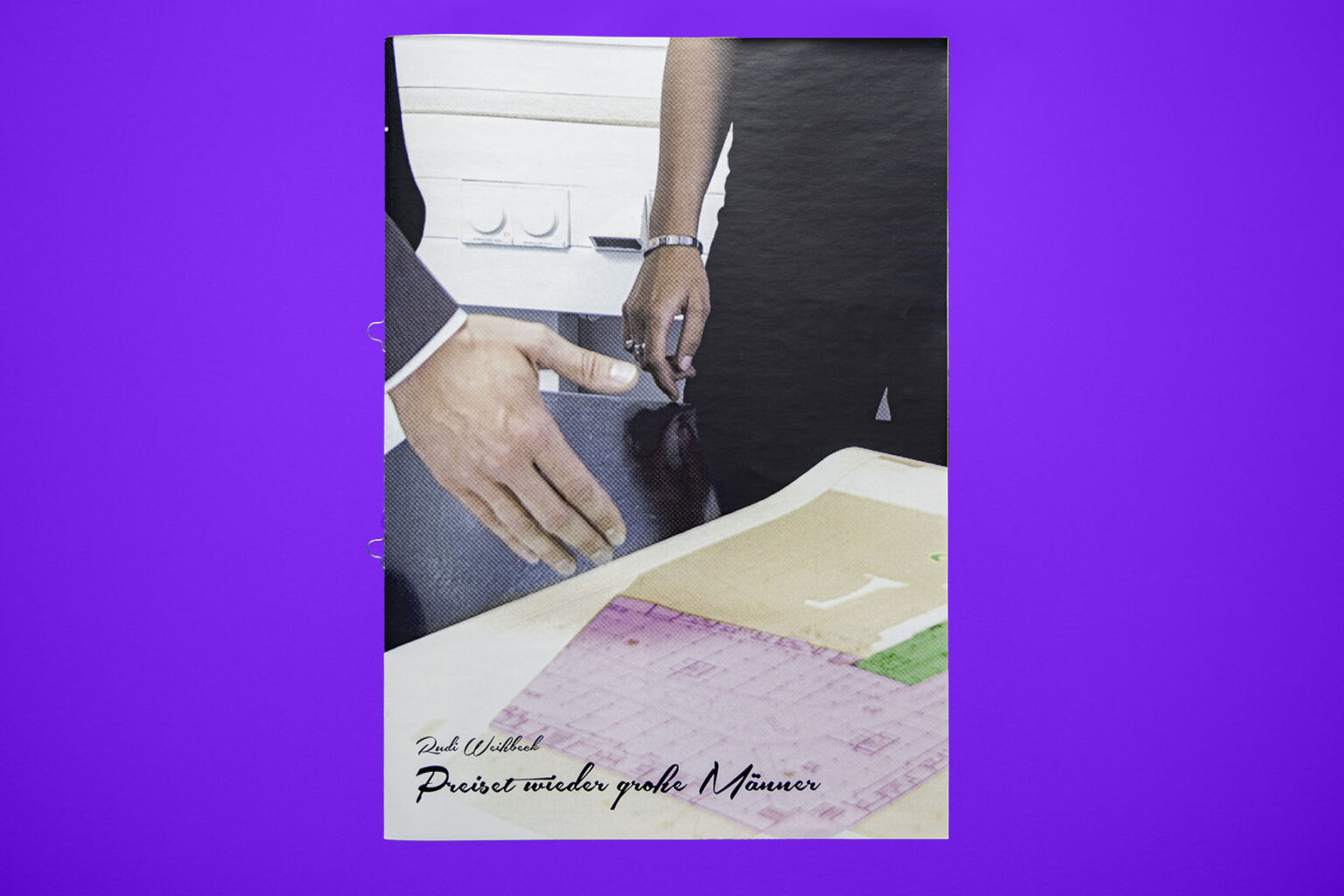 The work ‚Praise famous men again(Eurostyle Evidence)‘ is based on a collection of corporate brochures that I obtained by ordering them online from various marketing departments. I appropriated several images from these brochures, which reinforced bias and tropes in corporate photography, by rephotographing them.