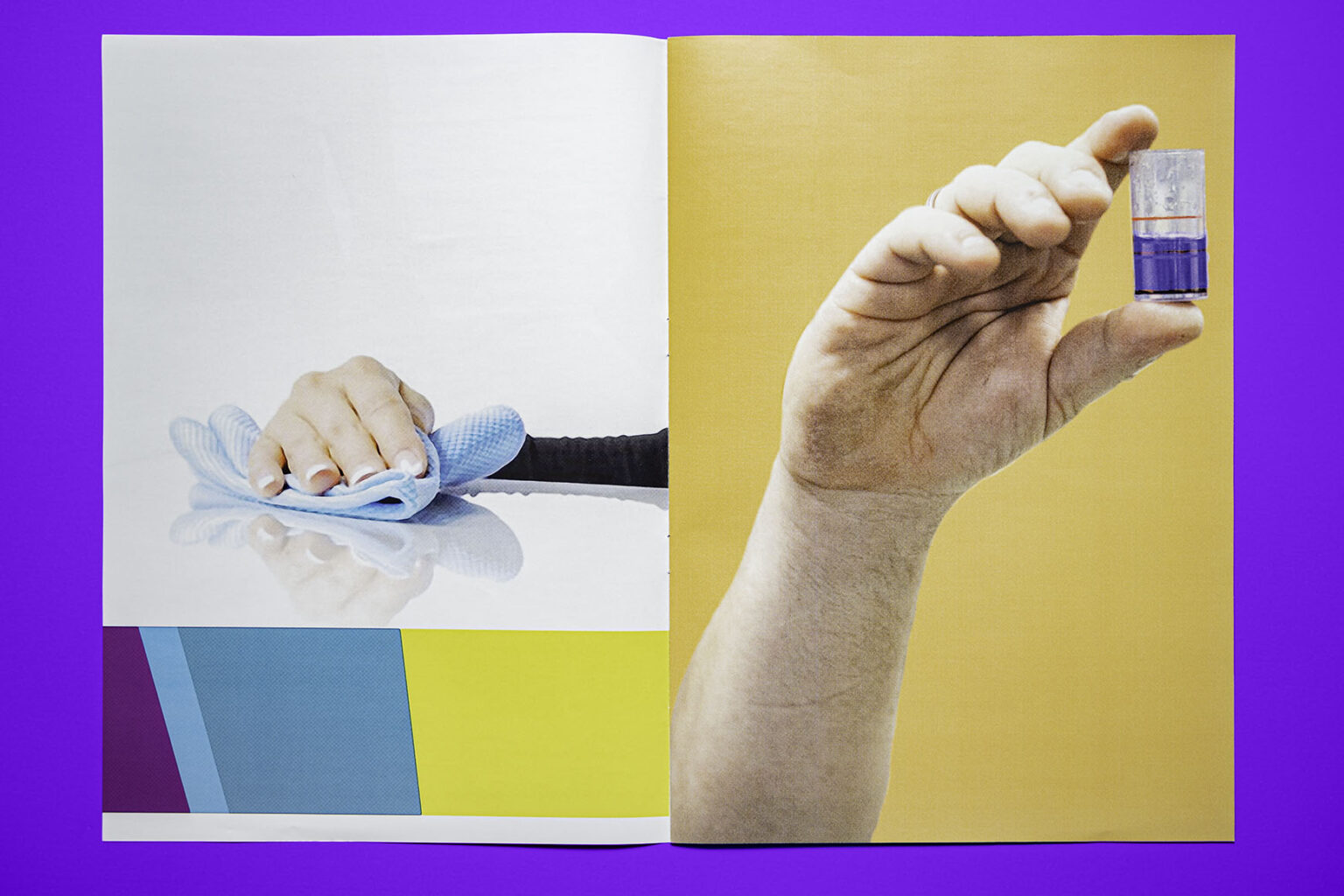 These images reveal a gendered approach to corporate photography, with men’s hands shown operating technical instruments or pointing toward things, often in front of women who are portrayed as passive bystanders. Women’s hands, on the other hand, are often shown in classically gendered roles such as cleaning.